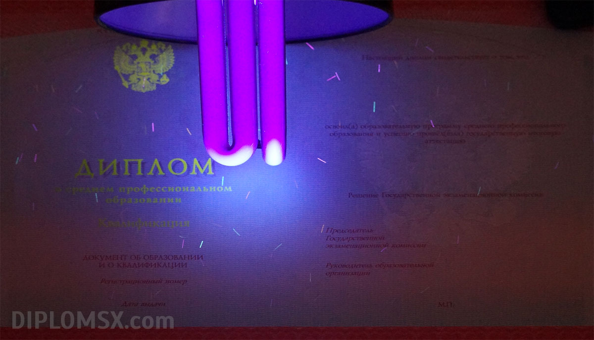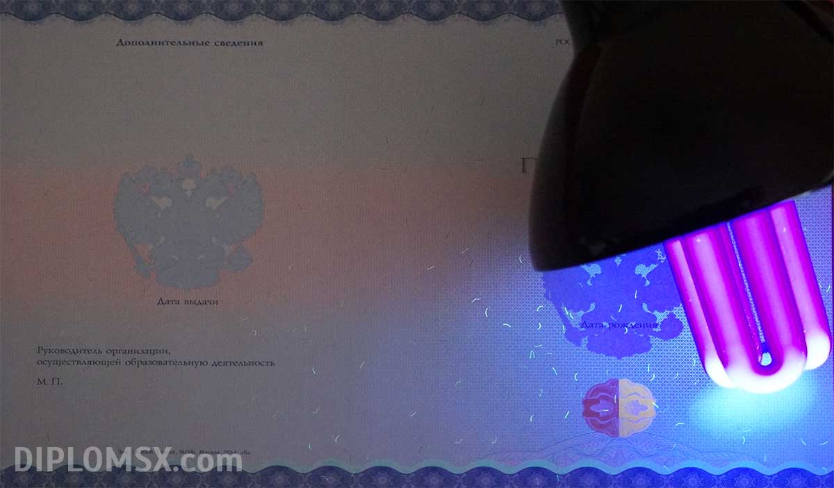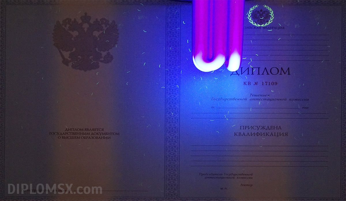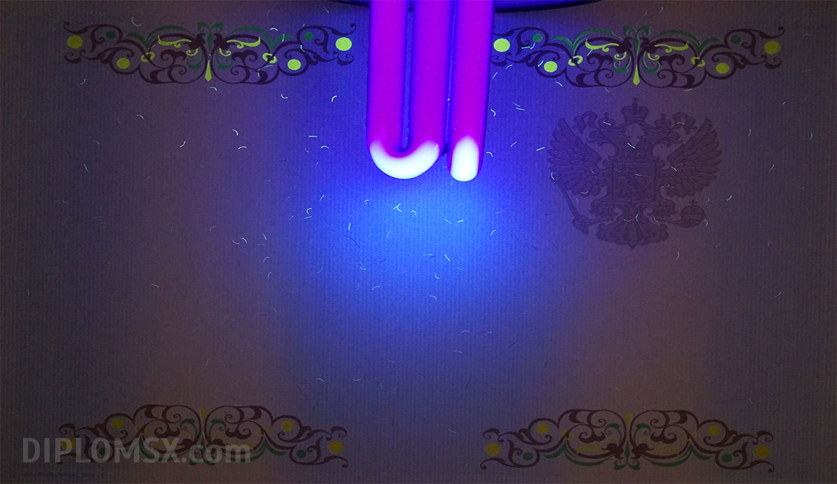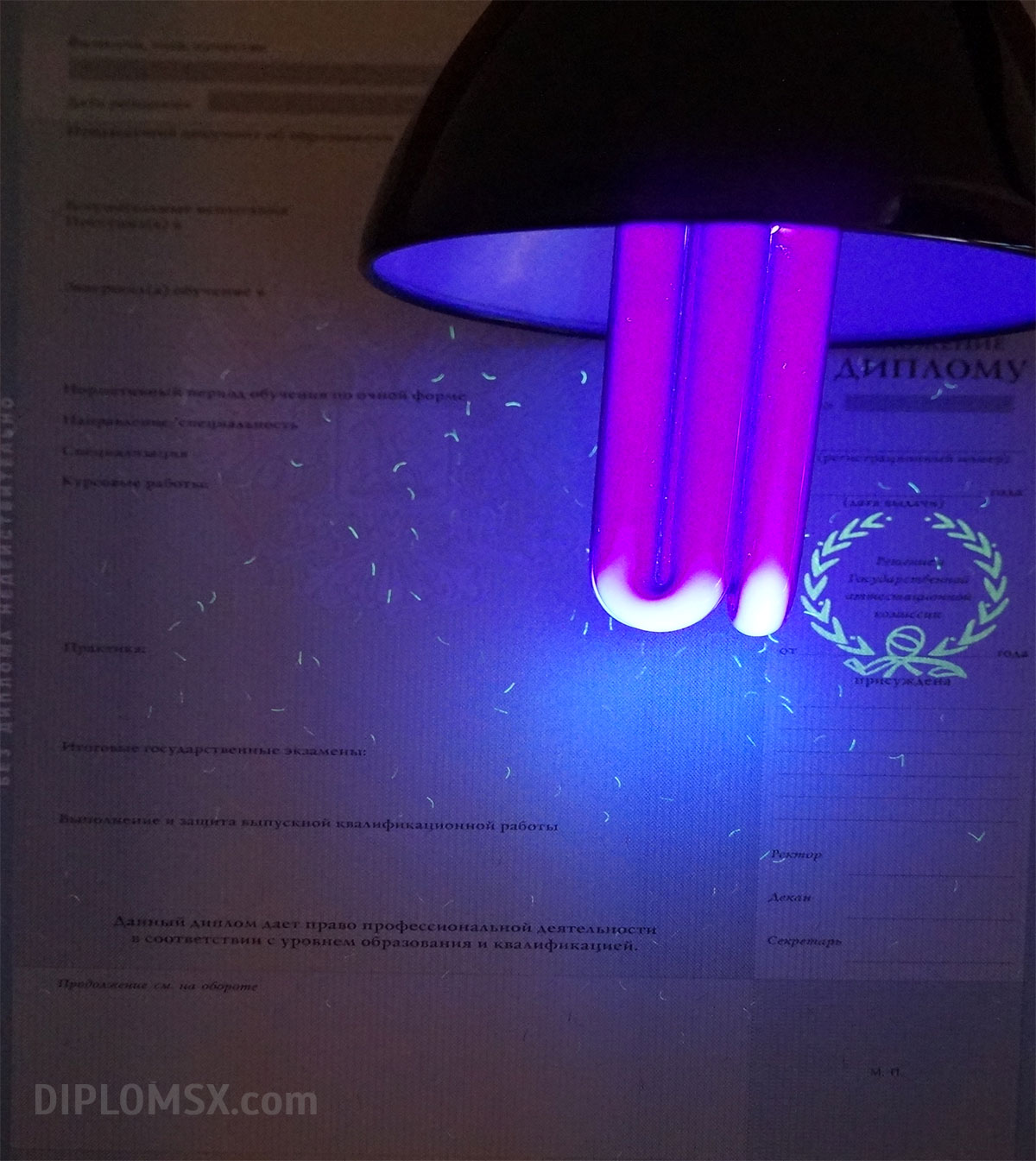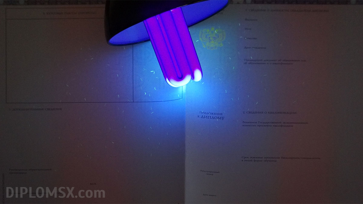 Для того чтобы ваши документы ничем не отличались от тех, которые вручаются выпускникам высших учебных заведений мы используем лишь соответствующие стандартам материалы. Ни по оттенку, ни по плотности их не отличить от государственных. В качестве носителей мы берем бланки Гознака, на которых имеются все необходимые степени защиты. Под действием ультрафиолетовых лучей будет видно свечение флуоресцентных нитей, а буквы не станут блестеть, выдавая то, что они напечатаны на типографском станке.